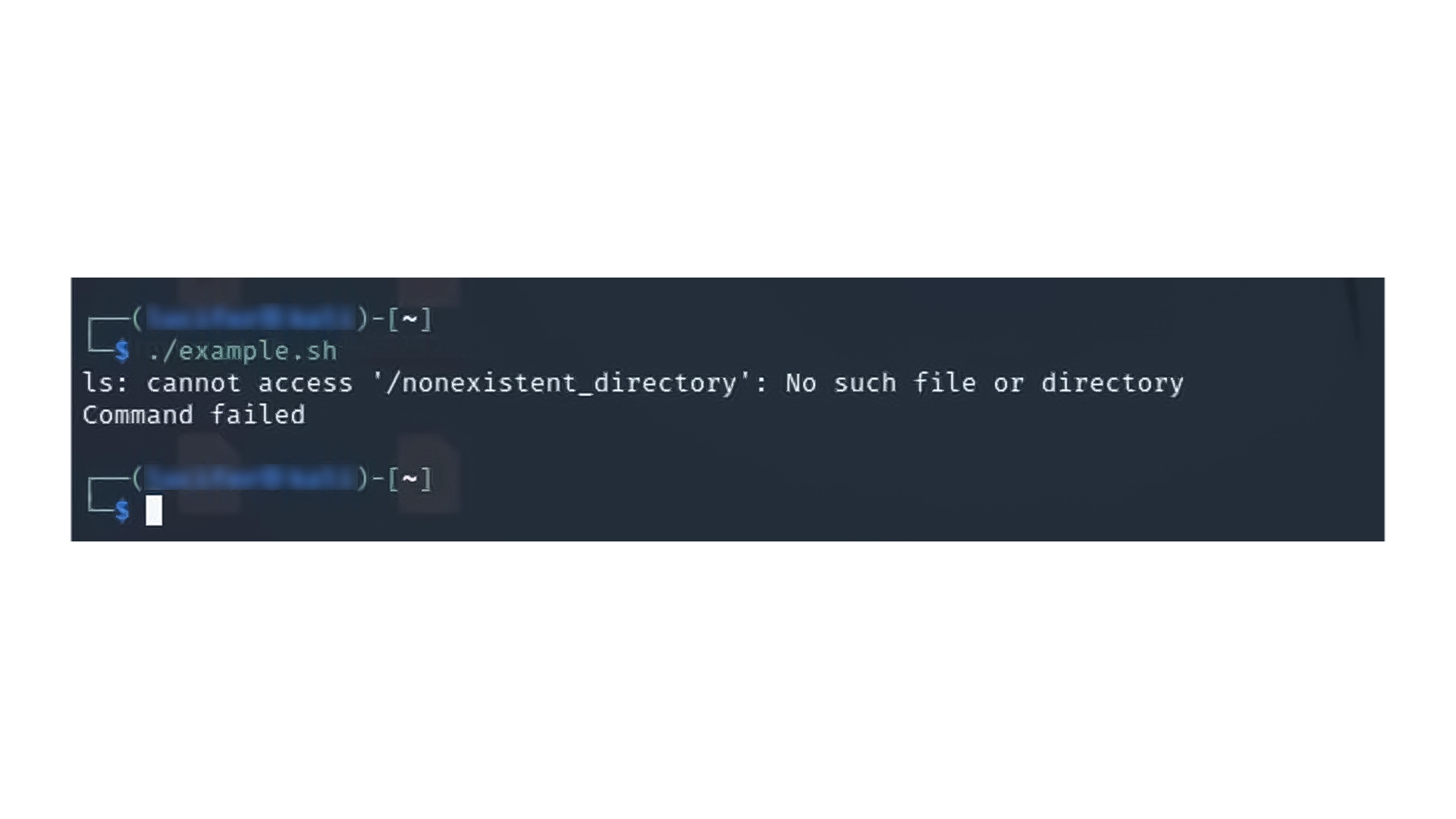 #!/bin/bash ls /nonexistent_directory if [ $? -ne 0 ]; then echo "Command failed" exit 1 else echo "Command Successful" fi
