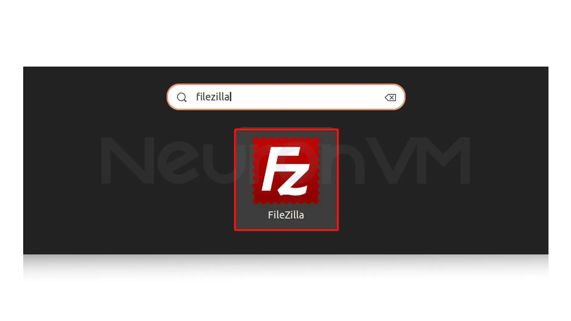 To launch FileZilla, you can either search for “FileZilla” in the Ubuntu Dash or go to the Applications menu, navigate to the “Internet” category, and click on the FileZilla icon: